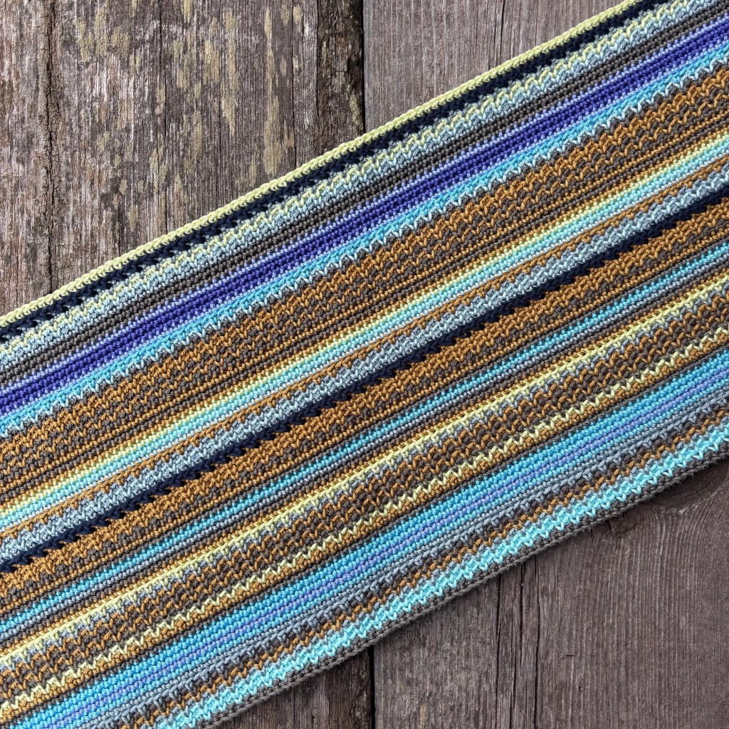 Men så plötsligt, efter ett års uppehåll började hjärnan tänka temperaturfilt igen! Jag har gjort temperaturfiltar i många olika garnsorter innan, men inte i FIKA. Det blev därför en rolig utmaning att sätta ihop en ny färgskala och en passande design till FIKA. Min tidigare design Allmoge är gjord i rutor så nu kände jag att det var dags med en randig igen, där man virkar ett varv per dag.