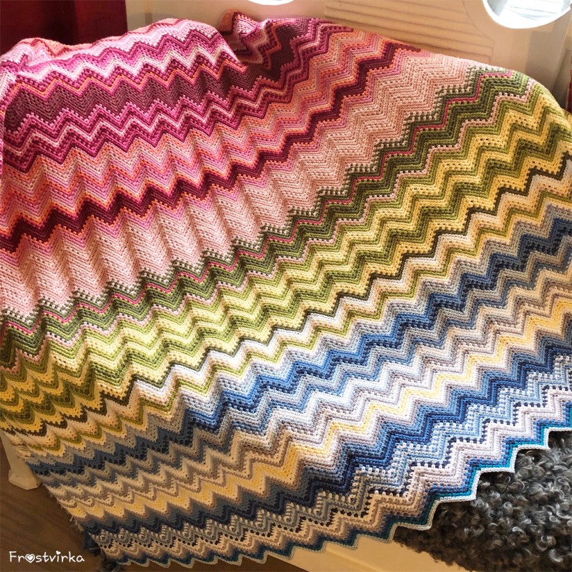 If you are making a temperatureblanket, you make one row a day, or a square a day. In the winter I have chosen the coldest temperature of the day, and in the summertime the warmest. During the other seasons I have used the average temperature.