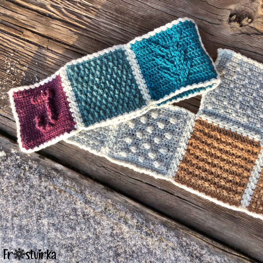 Mina temperaturskalor har sett lite olika ut varje år och du hittar dem i mönstren. Men, tänk på att du kan använda samma garnfärger som jag men ändra temperaturskalan så att den passar din del av Sverige.