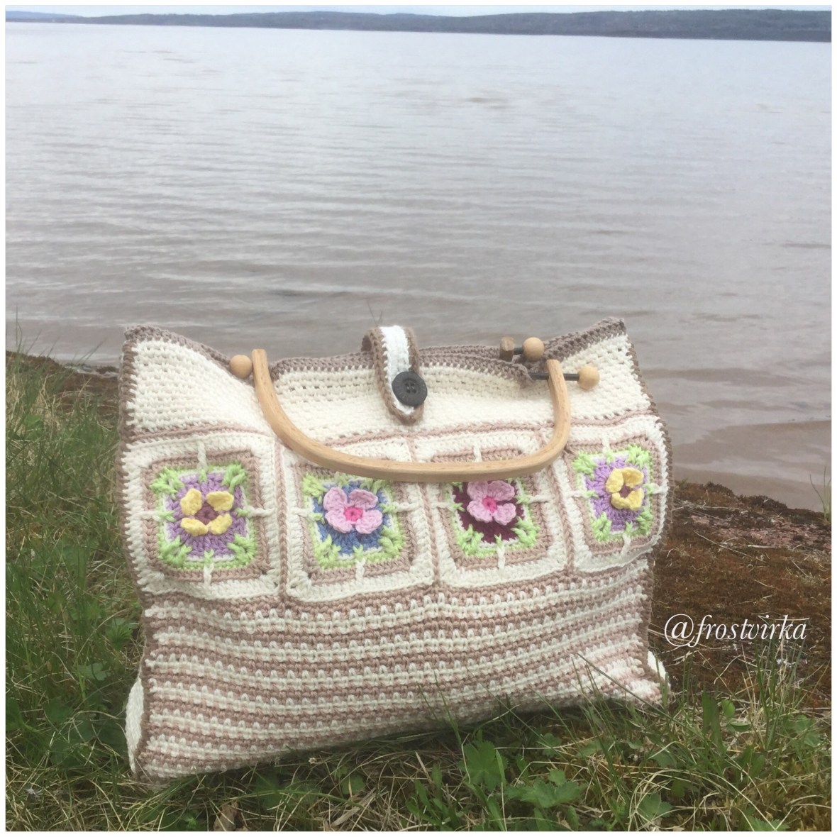 Håller just nu på att skriva ned flera av mönstren och fota steg för steg-bilder. Som tur är har jag hjälp av sönerna att klippa och klistra i olika program. Så inom kort kommer mönstret till min ruta ”Längtan efter våren” att publiceras här på bloggen. Det är den rutan jag använt till min blomväska.
